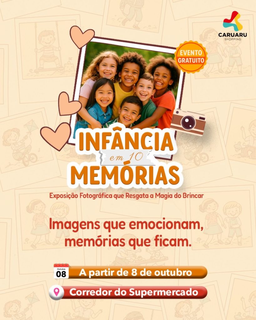 Exposição “Infância em 10 Memórias” 📅 Data: A partir de 08 de outubro🕒 Horário: Durante todo o funcionamento do shopping📍 Local: Corredor do Supermercado – Caruaru Shopping Em celebração ao Mês das Crianças, o Caruaru Shopping recebe a exposição “Infância em 10 Memórias”, que reúne fotografias marcantes e cheias de sensibilidade. As imagens retratam gestos […]