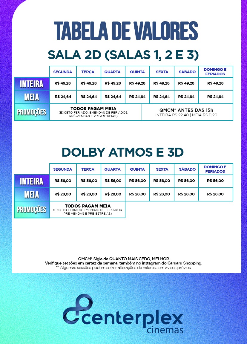 **Os horários fornecidos pelo Centerplex estão sujeitos a alteração sem aviso prévio