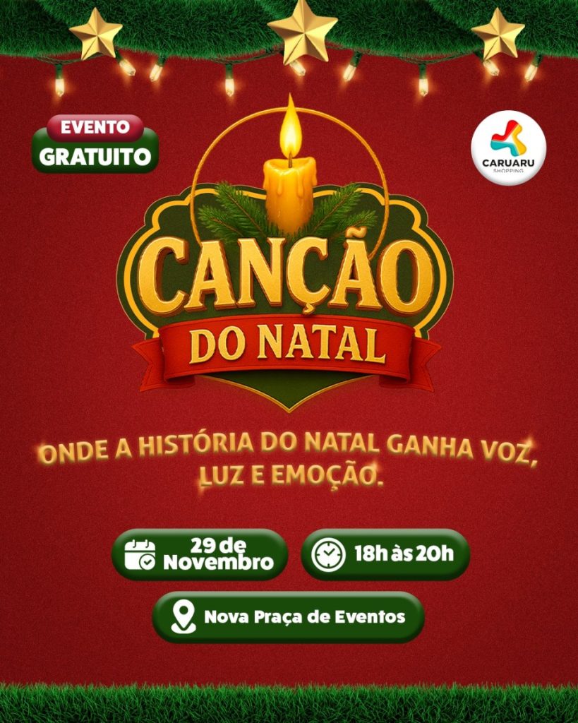 O Caruaru Shopping apresenta o espetáculo “Canção do Natal”, uma cantata que combina música, interpretação e emoção para celebrar o nascimento de Jesus. Em uma noite especial, o público será convidado a reviver a história que simboliza esperança, fé e renovação. Com coros, canções marcantes e uma encenação envolvente, o evento promete proporcionar uma experiência […]