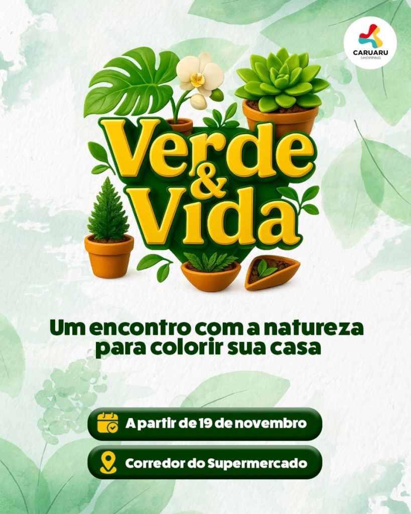 A partir do dia 19 de novembro, o Caruaru Shopping recebe o Verde & Vida, um espaço dedicado aos amantes de plantas e decoração natural. Instalado no Corredor do Supermercado e funcionando durante todo o horário do shopping, o evento reúne uma variedade de espécies, incluindo suculentas, orquídeas, terrários, samambaias, zamioculcas e pinheiros. Além das […]