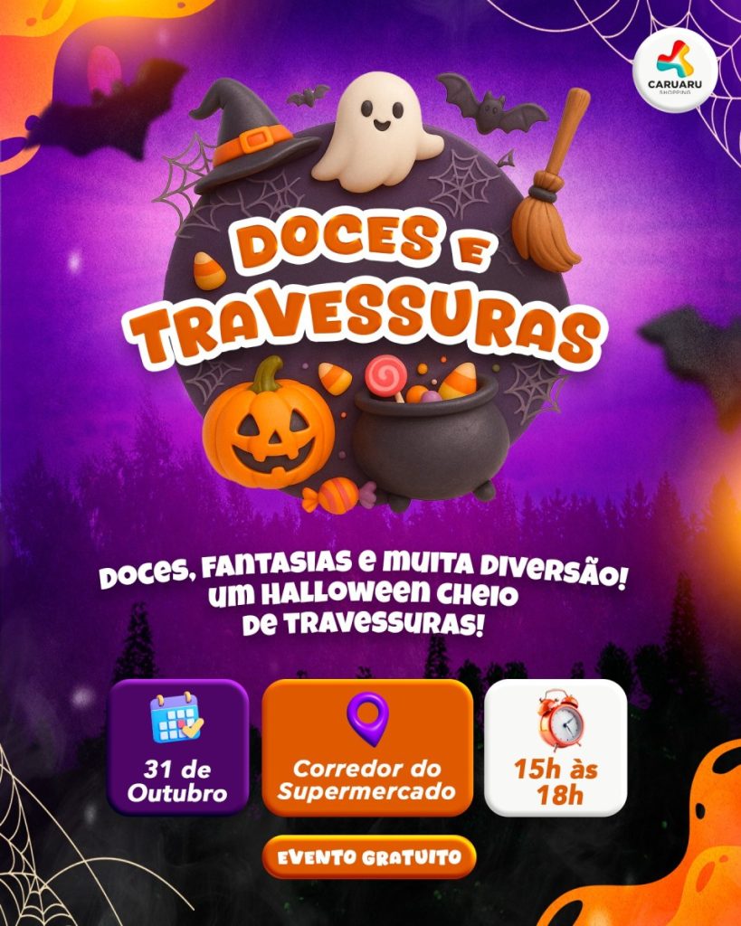 Doces e Travessuras no Caruaru Shopping No dia 31 de outubro, das 15h às 18h, o Caruaru Shopping convida o público para uma tarde cheia de diversão e magia com o evento Doces e Travessuras. Localizado no corredor do supermercado, o espaço contará com uma programação especial voltada para o público infantil, incluindo a tradicional […]