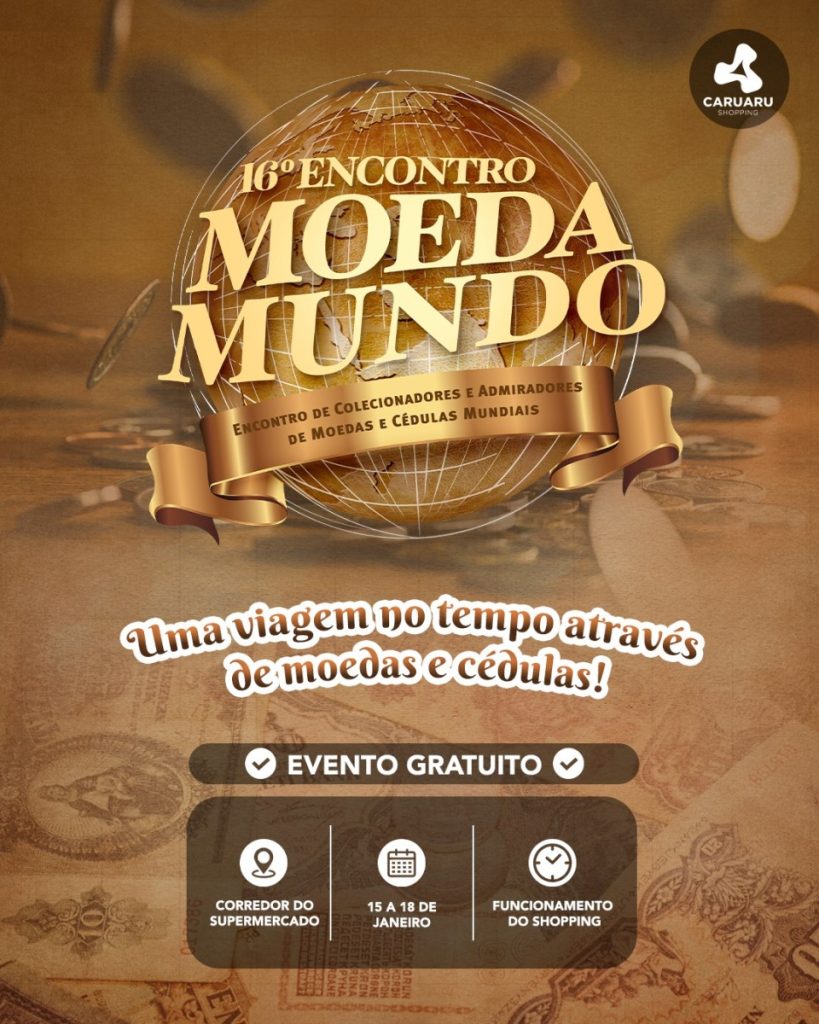 De 15 a 18 de janeiro, o Caruaru Shopping recebe a 16ª edição da Moeda Mundo, um evento voltado para colecionadores e apreciadores de moedas, cédulas e itens históricos. A exposição acontece no Corredor do Supermercado, durante o horário de funcionamento do shopping, oferecendo ao público a oportunidade de conhecer e trocar experiências sobre o […]