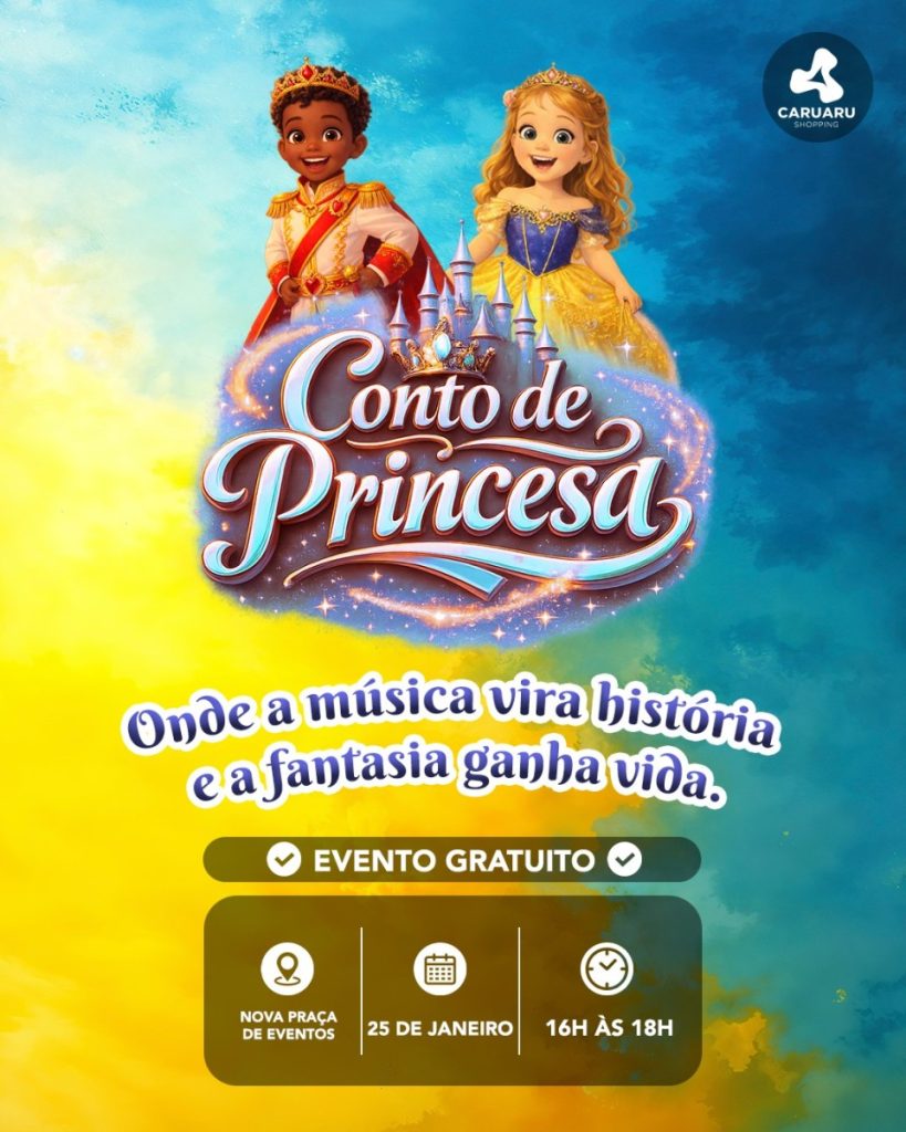 No dia 25 de janeiro, das 16h às 18h, a Praça de Eventos do Caruaru Shopping recebe o evento Conto de Princesa, aberto ao público. A programação conta com uma apresentação musical lúdica que narra a história de uma princesa de forma envolvente, voltada ao público infantil e familiar. Após o espetáculo, haverá um cortejo […]