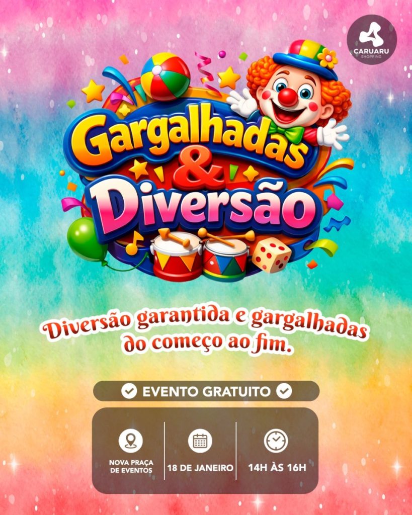 O Caruaru Shopping promove o evento Gargalhadas e Diversão, uma programação voltada ao público infantil, pensada para proporcionar momentos de alegria, interação e lazer em família. 📅 Data de início: 18 de janeiro de 2026⏰ Horário: das 14h às 16h📍 Local: Nova Praça de Eventos A ação integra a agenda de entretenimento do shopping, reforçando […]