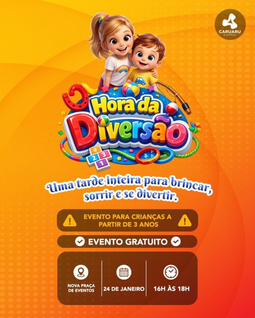 Hora da Diversão no Caruaru Shopping No dia 24 de janeiro, das 16h às 18h, a Praça de Eventos do Caruaru Shopping recebe a Hora da Diversão, uma programação gratuita voltada para o público infantil. O evento contará com diversas brincadeiras recreativas, promovendo interação, movimento e momentos de alegria para as crianças. Uma excelente opção […]