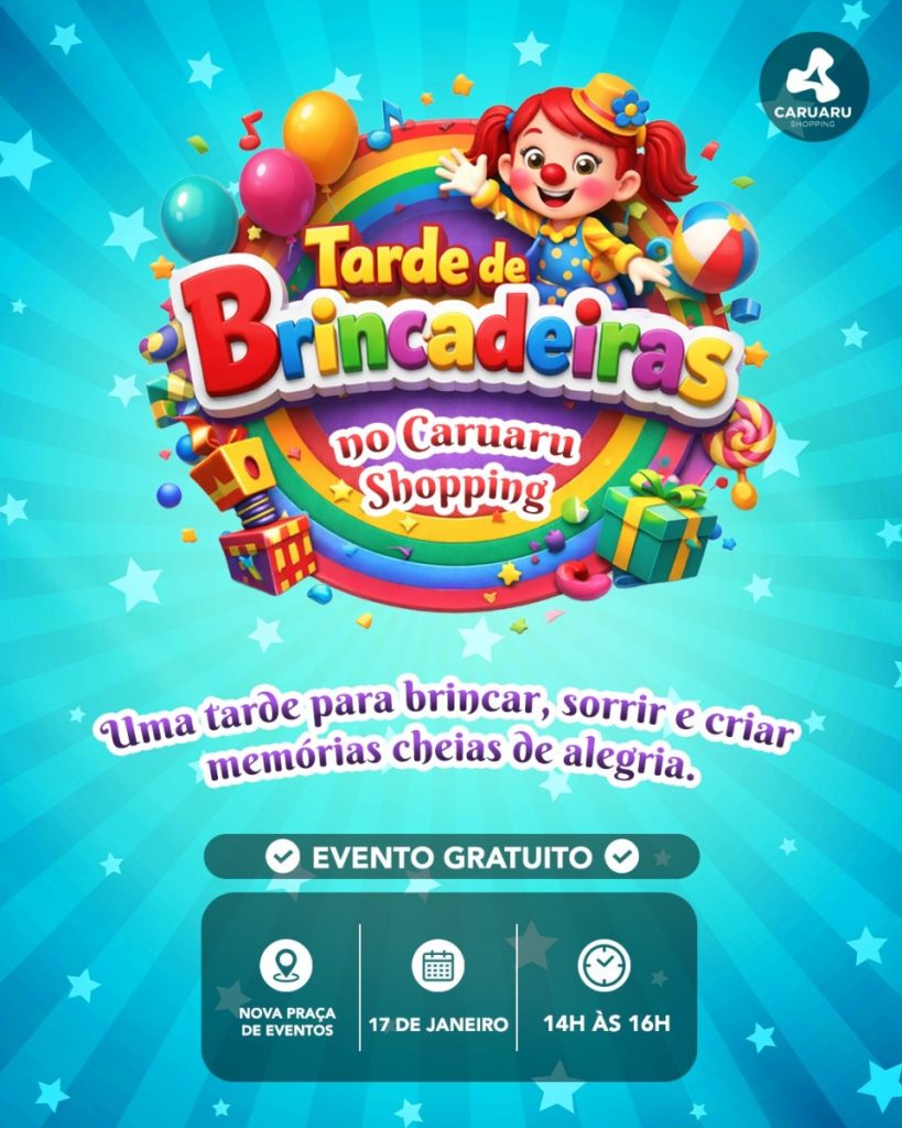 O Caruaru Shopping promove a Tarde de Brincadeiras, uma programação especial voltada ao público infantil, com atividades recreativas pensadas para proporcionar momentos de diversão e convivência em família. 📅 Data de início: 17 de janeiro de 2026⏰ Horário: das 14h às 16h📍 Local: Nova Praça de Eventos A ação integra a agenda de lazer do […]