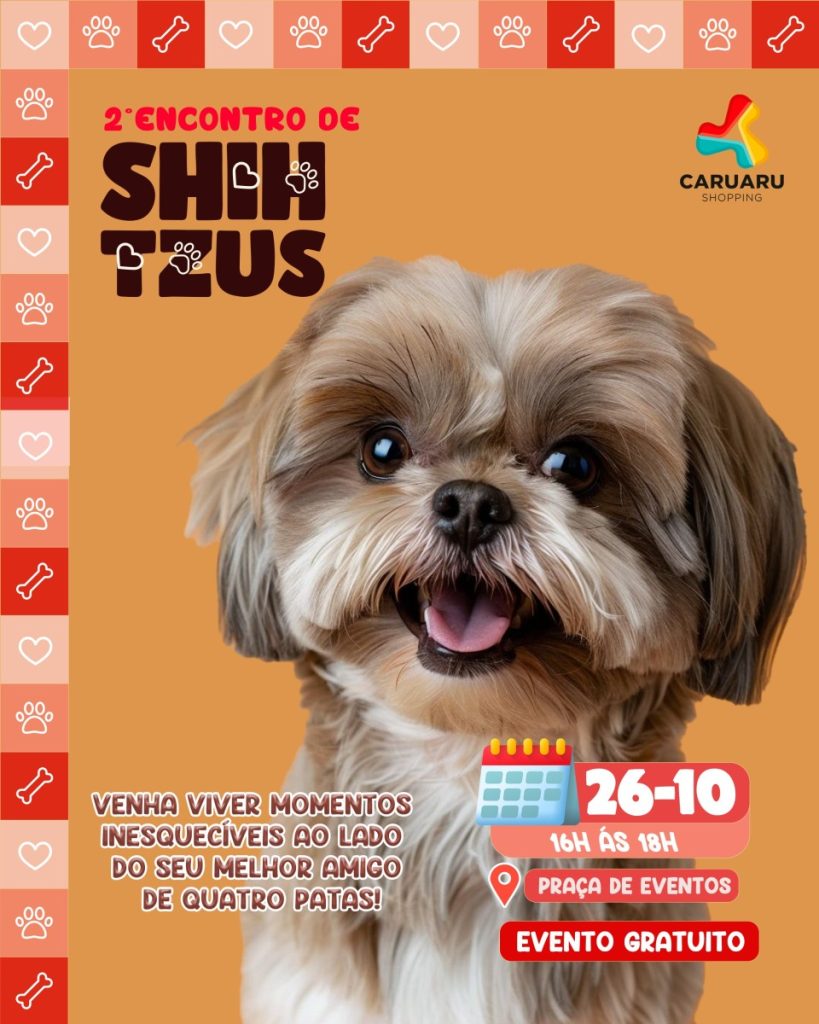 2º Encontro de Shih Tzu no Caruaru Shopping No dia 26 de outubro, a partir das 16h, o Caruaru Shopping realiza o 2º Encontro de Shih Tzu, um evento especial dedicado aos cães da raça Shih Tzu e seus tutores. A nova Praça de Eventos será transformada em um espaço acolhedor, preparado para receber os […]