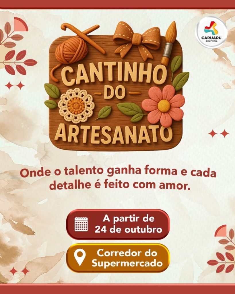 O Caruaru Shopping recebe, a partir do dia 24 de outubro, o Cantinho do Artesanato, um espaço dedicado à valorização da arte e da cultura local. Localizada no corredor do supermercado, a feira reúne o trabalho de talentosos artesãos da região, oferecendo uma ampla variedade de produtos únicos, criados com cuidado e dedicação. Entre as […]