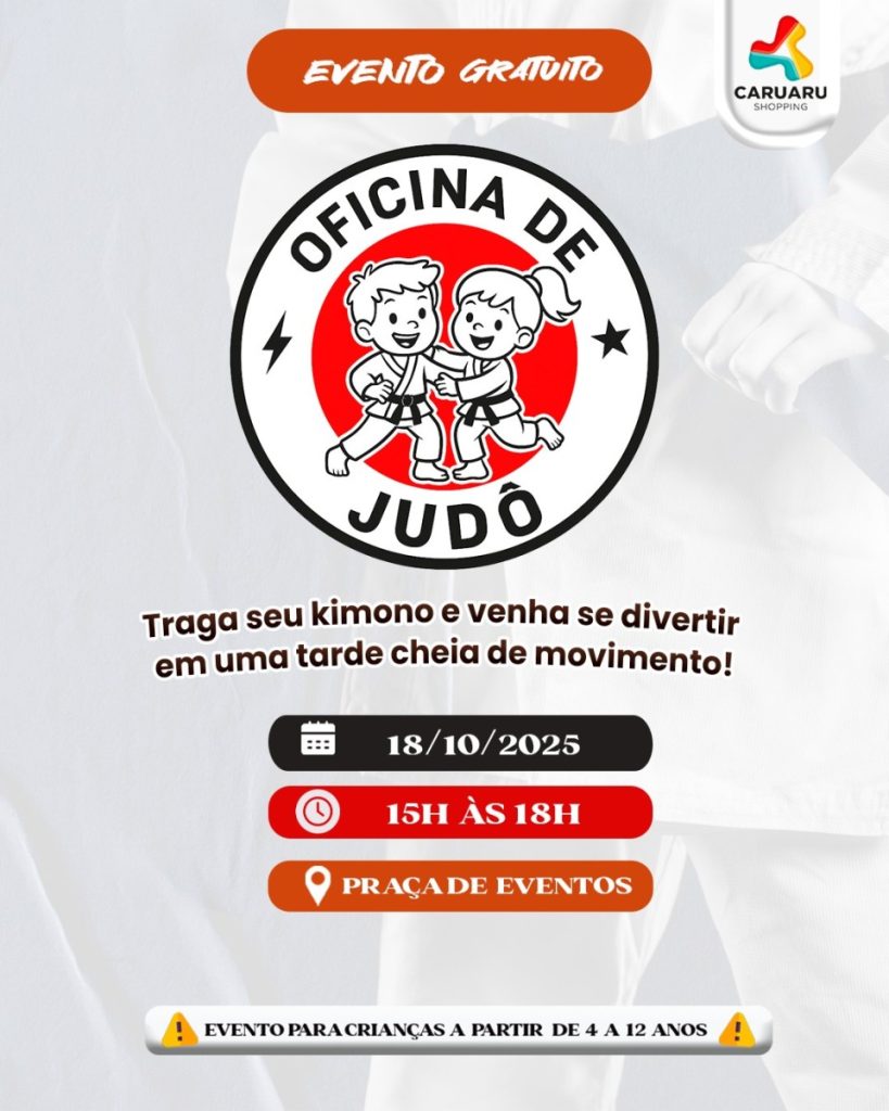 Oficina de Judô no Caruaru Shopping No dia 18 de outubro, das 15h às 18h, o Caruaru Shopping promove a Oficina de Judô, um evento especial que une aprendizado, esporte e diversão para o público infantil. A atividade, realizada na Praça de Eventos, é gratuita e voltada para crianças de 4 a 12 anos. Durante […]