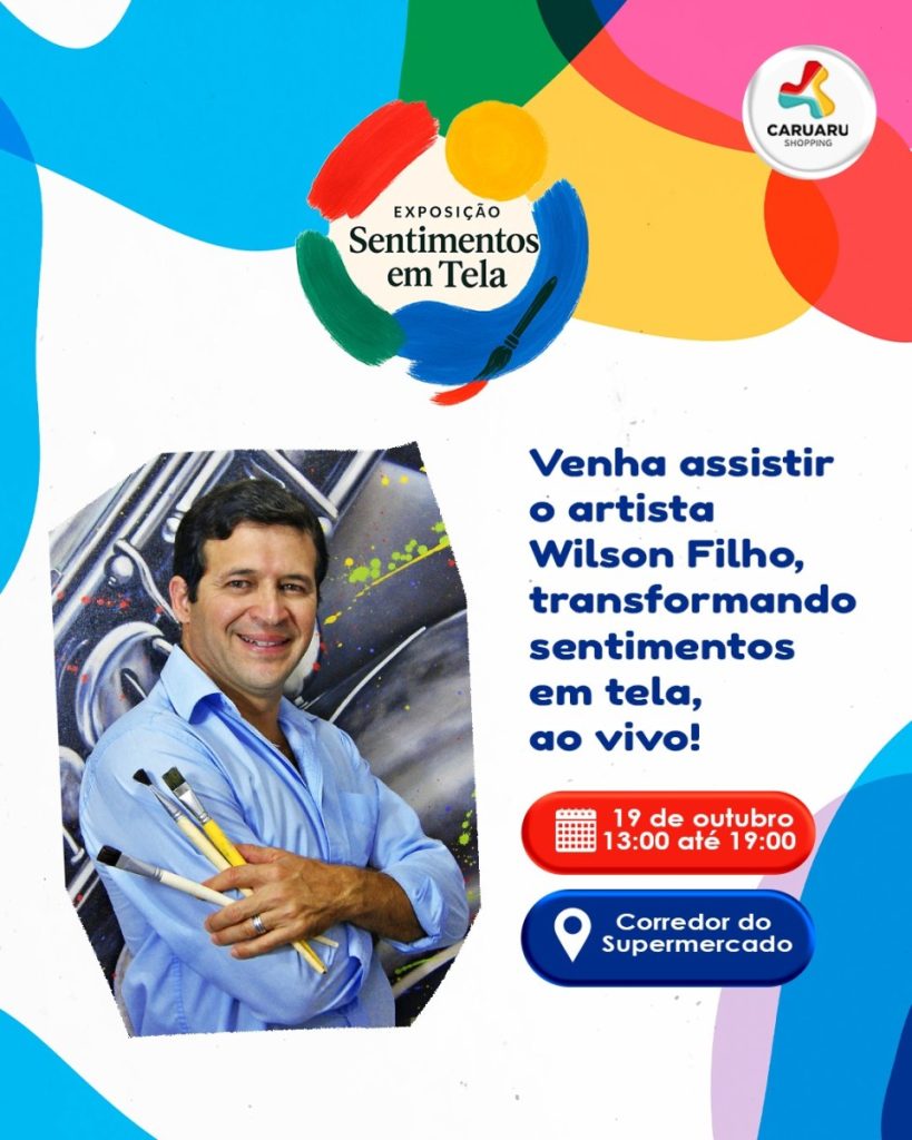 Sentimentos em Tela no Caruaru Shopping No dia 19 de outubro, das 13h às 19h, o Caruaru Shopping recebe o evento “Sentimentos em Tela”, que promete encantar o público com uma experiência artística única. Durante o evento, o artista realizará pinturas ao vivo, transformando emoções e inspirações em belas obras de arte. A ação acontece […]