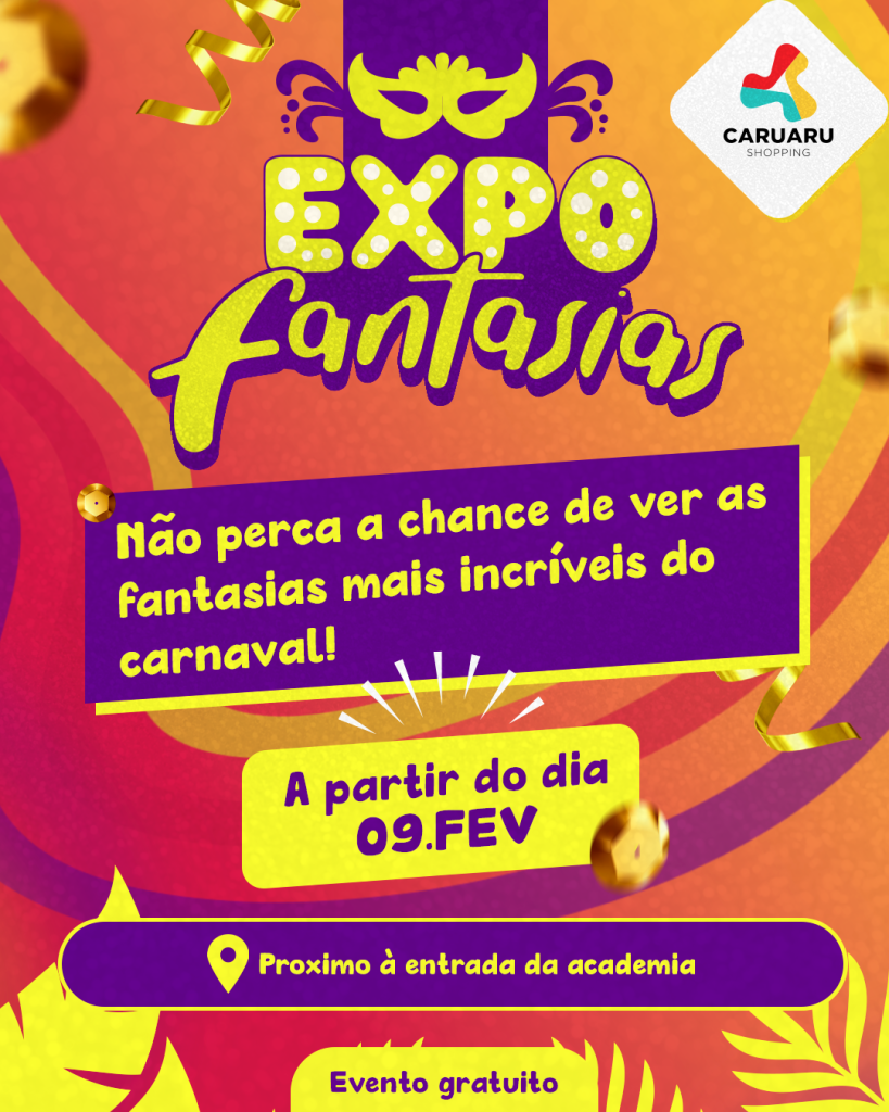 Expo Fantasias é atração no Caruaru Shopping Como parte da programação de carnaval, o Caruaru Shopping estará realizando, de 9 a 22 de fevereiro, a Expo Fantasias. A atração acontecerá próximo à entrada da academia, de acordo com o horário de funcionamento do centro de compras e convivência. De acordo com a gerente de Eventos, […]