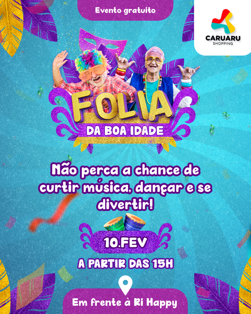 Caruaru promove a Folia da Boa Idade O Caruaru Shopping estará realizando, no dia 10 de fevereiro, a Folia da Boa Idade. O evento acontecerá em frente à Ri Happy, a partir das 15 horas. “Essa é mais uma festa que fará parte da nossa programação de Carnaval que contempla todos os públicos. O evento […]
