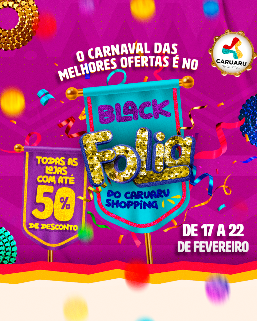 Carnaval é no Caruaru Shopping! ❤️🥳 Estamos em festa e você não pode perder o carnaval de ofertas que teremos dos dias 17 a 22 de fevereiro. São todas as lojas com até 50% de desconto. Um show de ofertas para você adquirir o melhor. 🎊🎉 Não perde essa oportunidade!! 🥳😍🤩