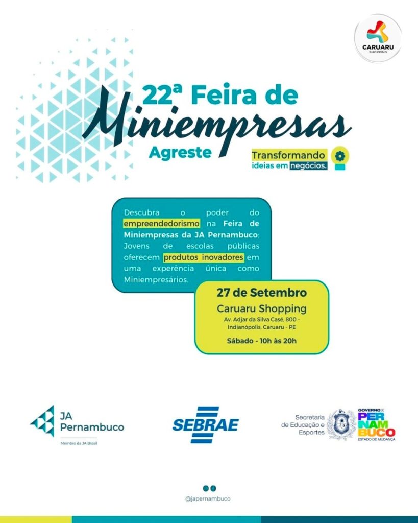🚀 Caruaru Shopping recebe a Feira de Miniempresas 2025 No dia 27 de setembro, das 10h às 20h, a Nova Praça de Eventos do Caruaru Shopping será palco da Feira de Miniempresas, iniciativa promovida pela Junior Achievement (JA) – uma das maiores organizações globais de incentivo ao empreendedorismo juvenil. Durante o evento, jovens estudantes terão […]