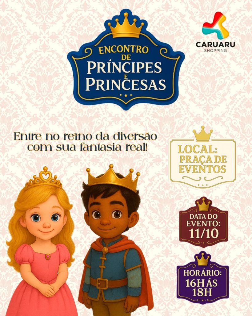 Encontro de Príncipes e Princesas no Caruaru Shopping ✨👑 No dia 11 de outubro, das 16h às 18h, a Nova Praça de Eventos do Caruaru Shopping se transformará em um verdadeiro reino encantado para receber o Encontro de Príncipes e Princesas. Será uma tarde mágica, repleta de fantasia, interação e muita diversão! O evento contará […]