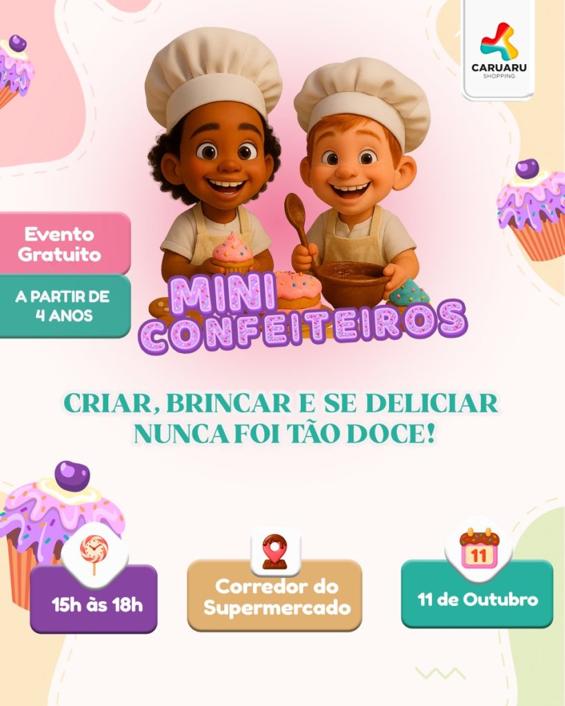 Mini Confeiteiros no Caruaru Shopping 🍰✨ No dia 11 de outubro, das 15h às 18h, o corredor do supermercado do Caruaru Shopping se tornará ainda mais doce com a oficina “Mini Confeiteiros”. As crianças terão a oportunidade de decorar cupcakes, soltando a imaginação com cores, confeitos e muita criatividade, enquanto desenvolvem habilidades motoras e se […]