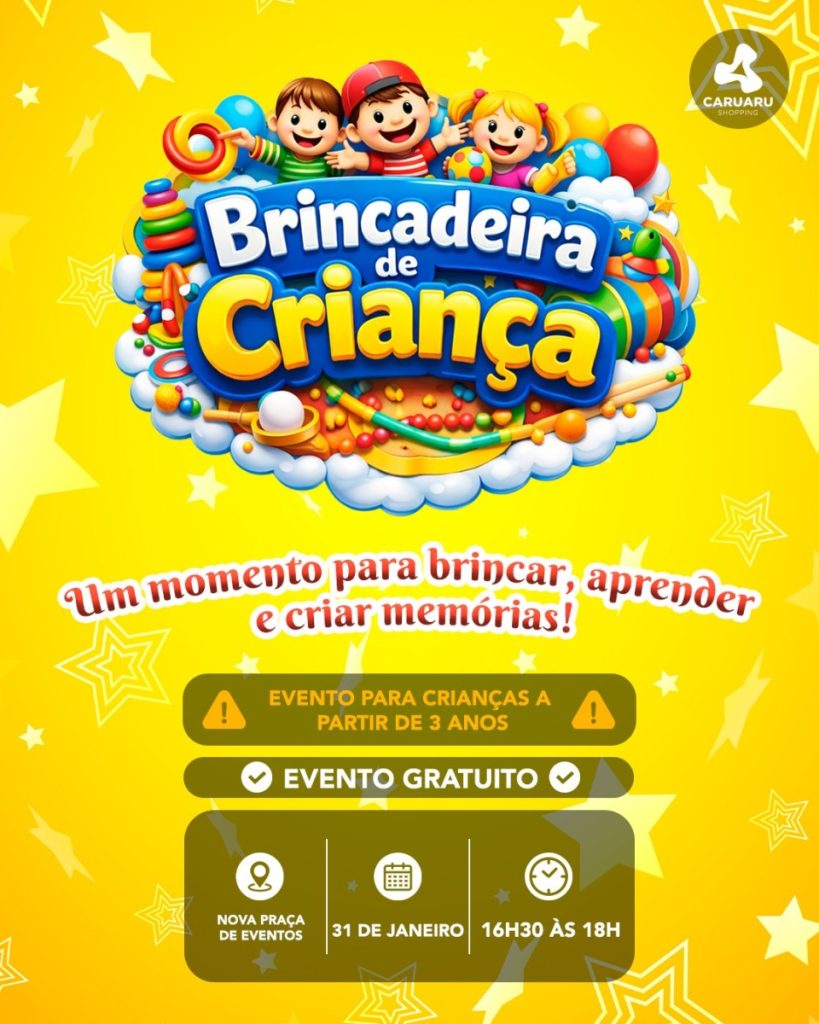 O Caruaru Shopping realiza o evento Brincadeira de Criança, uma programação especial voltada ao público infantil, com atividades recreativas que promovem diversão, movimento e interação. O evento acontece no dia 31 de janeiro, a partir das 16h30, na Nova Praça de Eventos. A proposta é oferecer um momento leve e animado para as crianças, por […]