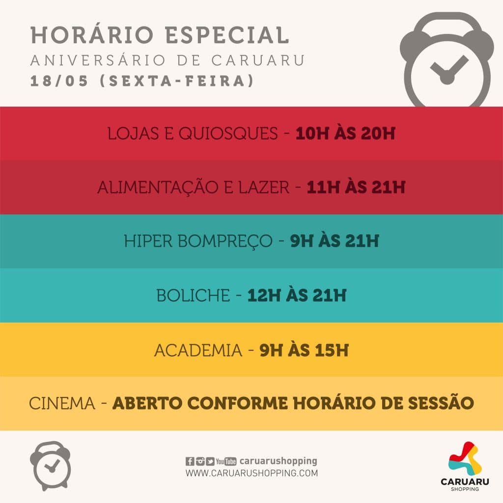 Horário de Funcionamento Aniversário de Caruaru – 18/05/2018